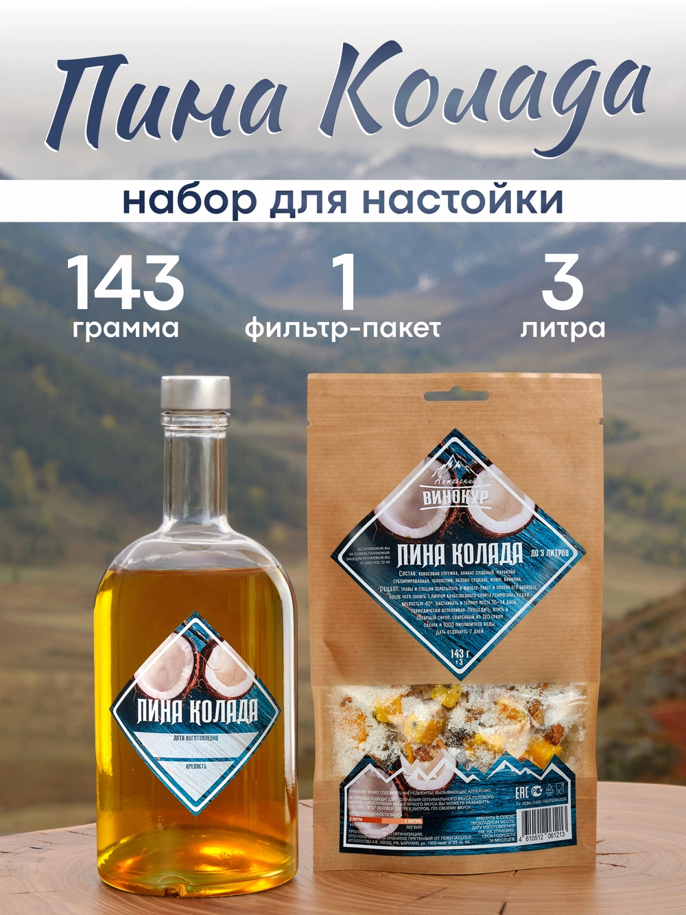 Описание: Ваш билет в тропики! Набор для создания бархатистой Пина Колады с кокосом, ананасом и маракуйей. ~20% об. Описание Ловцы тропического бриза, встречайте! «Алтайский Винокур» переносит вас на белоснежный пляж с набором для настойки «Пина Колада». Это не просто коктейль — это ваша личная порция лета в бутылке, созданная из самых сочных даров природы. Мы воссоздали знаменитый дуэт нежного кокоса и кисло-сладкого ананаса, обогатив его страстной маракуйей и сладостью отборных сухофруктов. Готовьтесь к абсолютному релаксу. Что в основе? Идеальная формула отдыха. Кокосовая стружка создаёт бархатистую, сливочную основу. Сушеный ананас и сублимированная маракуйя дарят взрывную тропическую кислинку и солнечный аромат. Чернослив, яблоко и изюм добавляют глубину, сладость и винную таниновость, а ванилин — смягчает и округляет букет. Состав кокосовая стружка, ананас сушеный, маракуйя сублимированная, чернослив, яблоко сушеное, изюм, ванилин. Вкус — Путешествие на райский остров. Первой встречает кремовая сладость кокоса, затем её освежают яркие нотки ананаса и страстная кислинка маракуйи. Сладкая гавань из чернослива и изюма делает вкус объёмным, а лёгкая ваниль завершает его невероятно мягким, гладким послевкусием. Аромат — С первых секунд вас окутывает пьянящий букет тропиков: сладкий кокос, спелый ананас и экзотическая маракуйя. В шлейфе чувствуются медовые тона сухофруктов и тёплый шлейф ванили. Цвет — Настойка приобретёт сочный золотисто-соломенный или лёгкий янтарный оттенок — как лучшие моменты заката на океане. География сбора — Мы собрали для вас солнце: тропические фрукты — от проверенных мировых поставщиков. Создайте свою идеальную Пина Коладу — вкус отпуска, который не заканчивается. Рецепт травы и специи пересыпать в фильтр-пакет и плотно его завязать, после чего залить 1 литром качественного спирта/самогона/водки 40°. Настаивать в темном месте 10-14 дней, периодически встряхивая. Процедить, влить в сахарный сироп, сваренный из 180 грамм сахара и 1000 миллилитров воды. Дать отдохнуть 7 дней. *2 литра получается по рецепту на упаковке, если напиток кажется приторным, можно разбавить до 3 литров основой схожего градуса. ⭐️ Каждый набор с ингредиентами для настойки упакован в герметичный дой-пак и комплектуется: фильтр-мешком из специального пищевого материала для легкой и быстрой фильтрации, красочными фирменными этикетками-наклейками на бутылки. Это позволит удобно хранить и использовать содержимое. ⭐️ При общем заказе более 1950 рублей доставка будет бесплатно Характеристики Крепость ~20% об Наличие самогонного аппарата Не требуется Литров готовой продукции по рецепту 3 литра Классификация Ликёр