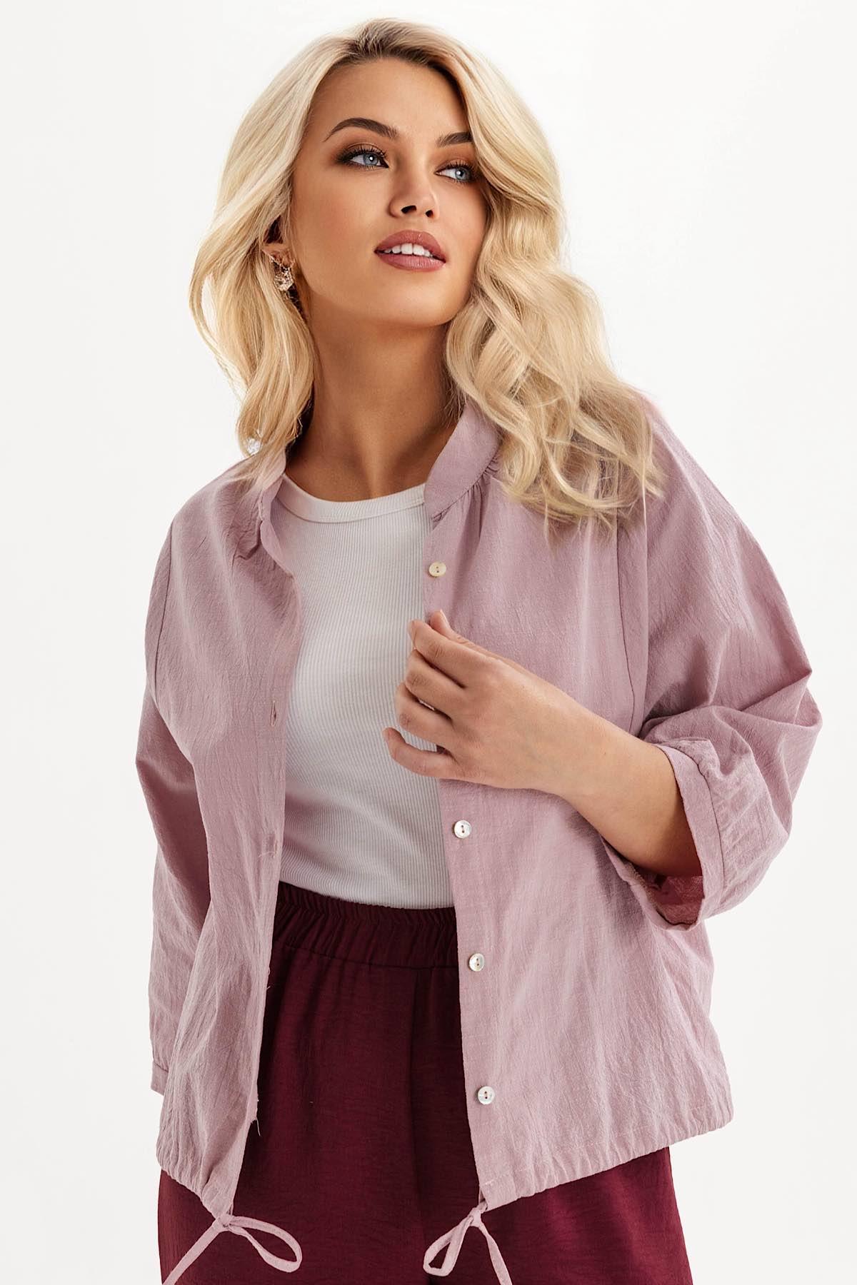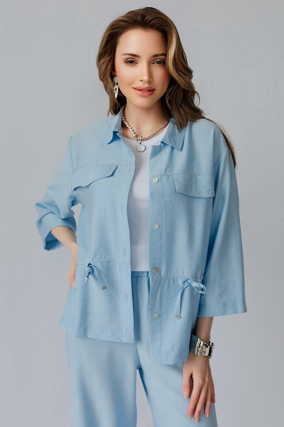 Описание: Стильная рубашка свободного силуэта . Отложной воротник. Рукав 3/4. Дополнена декоративными клапанам на груди и кулиской на уровне талии. Функциональные застежки - пуговицы. Идеально подходит для работы и отдыха.