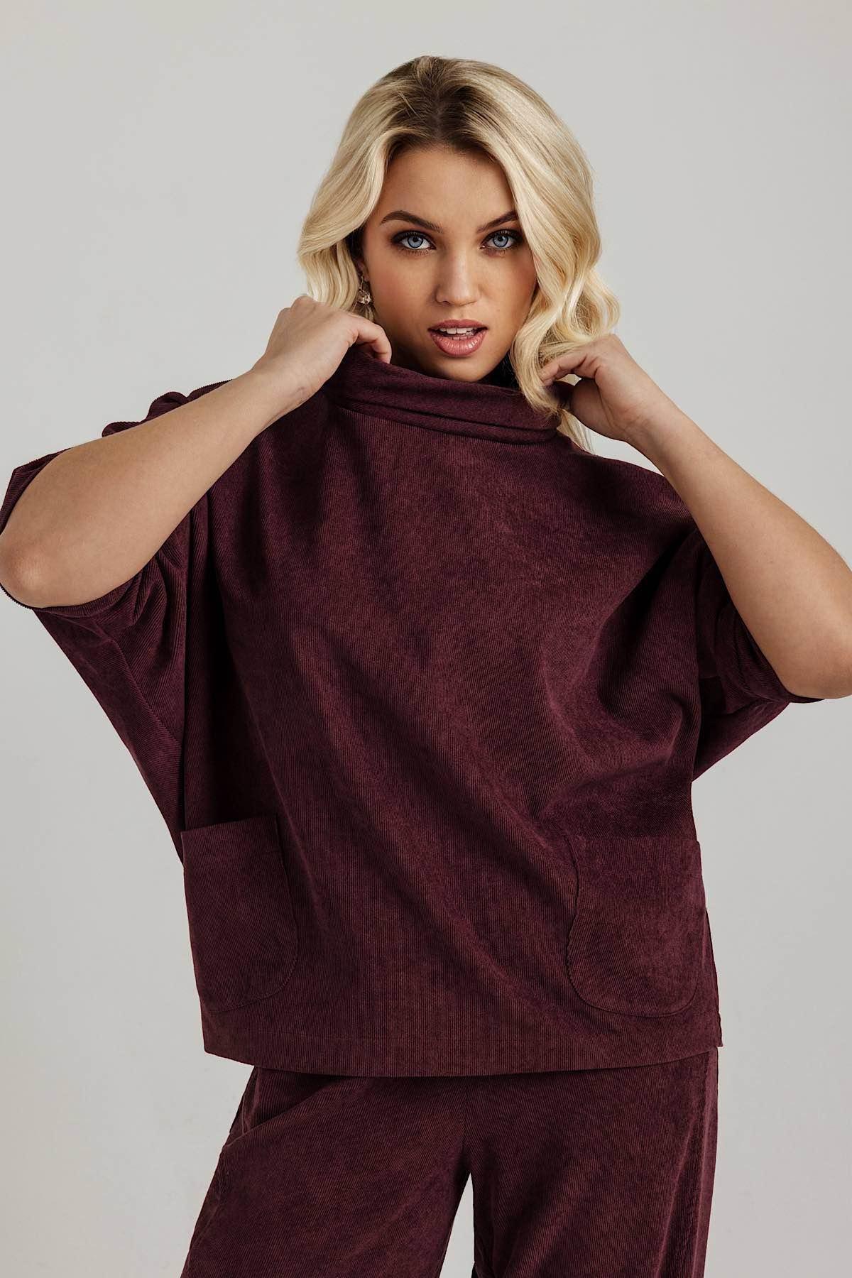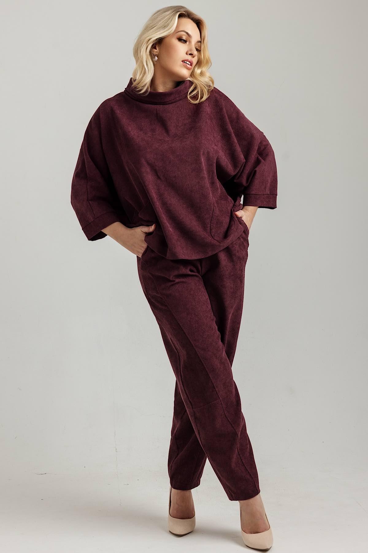 Вельветовая туника свободного кроя — отличный выбор для любого времени года. Рукава-"летучая мышь" 3/4, плюс удлинённый силуэт обеспечивают удобство и возможность сочетать её с любым низом.