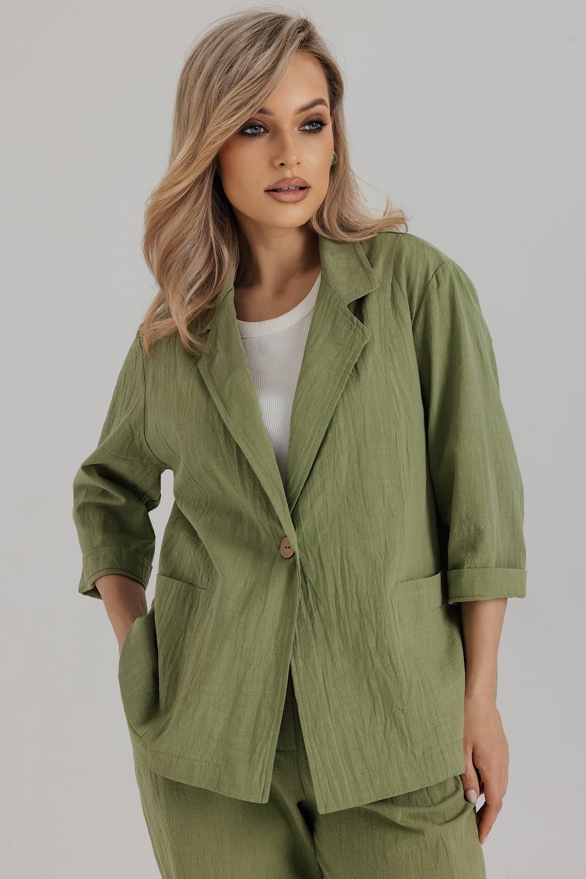 Описание: Женский жакет из вареного хлопка с английским воротником. Классический крой и натуральные хлопковые ткани делают этот жакет не только стильным, но и удобным в носке. Женский жакет летний хлопок отлично подойдет для создания как повседневных, так и более элегантных образов. Он подчеркнет вашу индивидуальность и станет незаменимой вещью в гардеробе.. Рукав 3/4. Дополнена накладными карманами. Функциональные застежки - пуговицы. Идеально подходит для работы и отдыха.